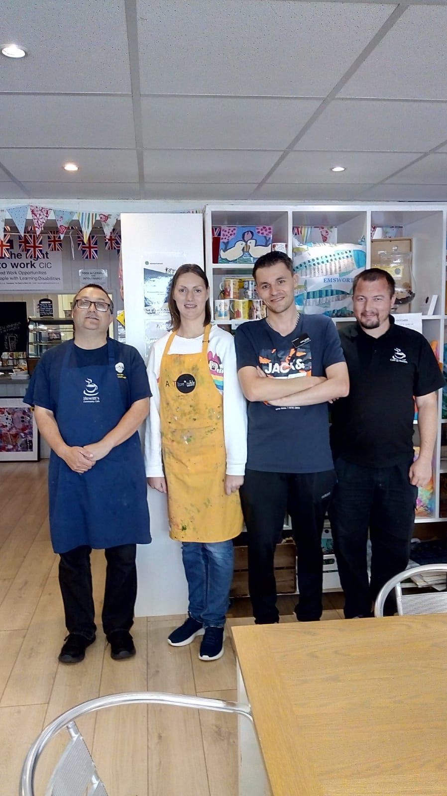 We have a small but wonderful team of people who work under the watchful eye of a kitchen supervisor, creating refreshments throughout the day. The Canteen team are trained in basic food hygiene and safe working practices. Not only do they keep our Artists happy and well fed, but we have a few community groups that use our centre who also enjoy the drinks and food prepared by our team. We have had lots of compliments on their excellent customer service skills and catering! Overall, this team develops confidence, hospitality, catering, and customer service skills during their working day.